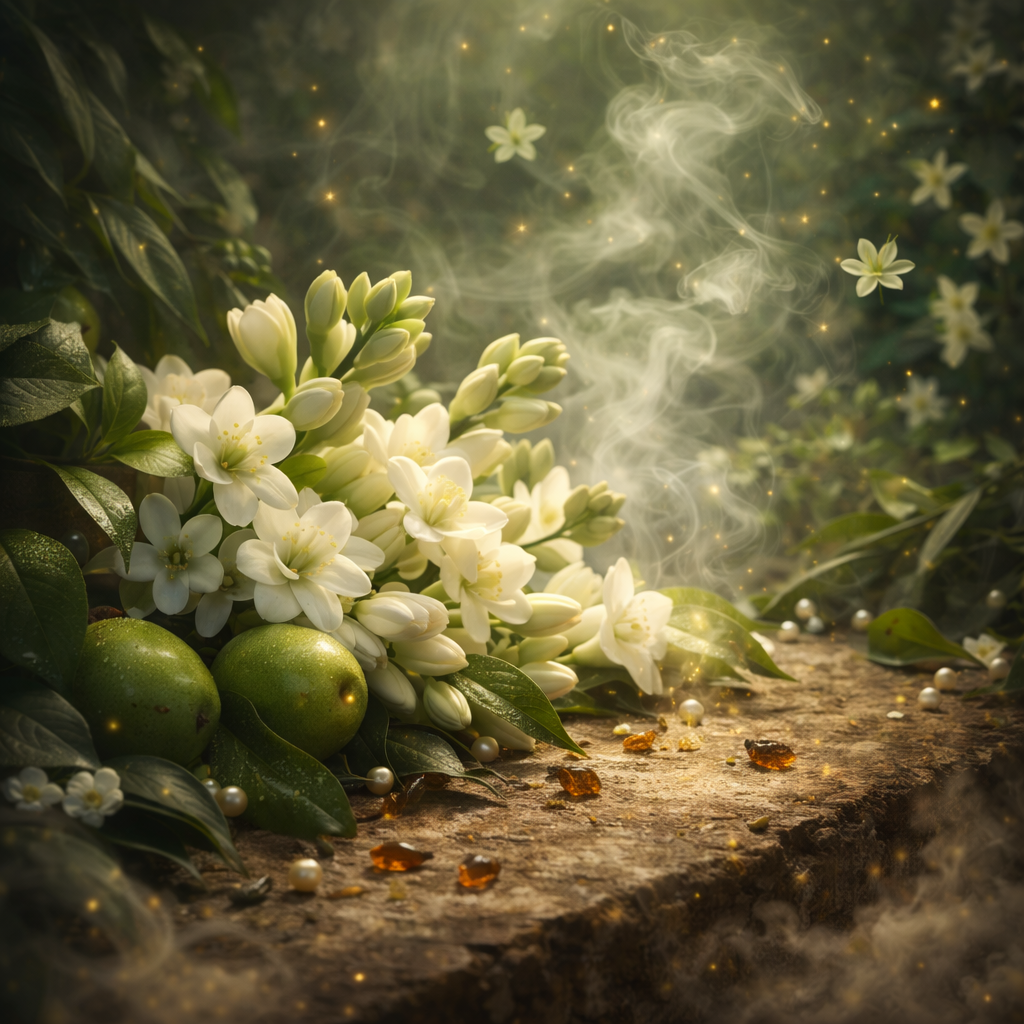 Im Herzen entfaltet sich die opulente Blütenfülle aus Tuberose, Jasmin, Ylang-Ylang und Orangenblüte – üppig, cremig und äußerst verführerisch. Im Ausklang wird die Tuberose weicher und milchiger, getragen von Moschus und warmen Ambernoten, die dem Duft Tiefe und eine sinnliche Eleganz verleihen.